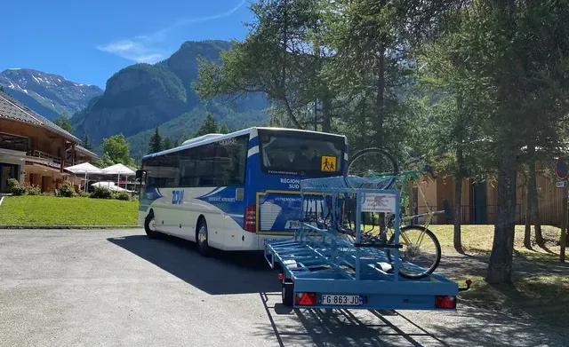 Plusieurs départs par jour depuis la base de loisirs jusqu'a la station. — vélo embarqué, sans supplément. Descendez, remontez, recommencez. La navette s'occupe du reste.